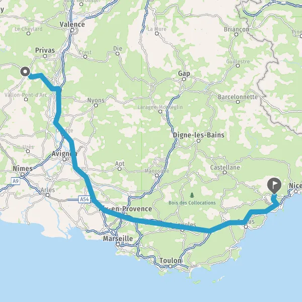 Au rond-point, prendre la 3ème sortie sur N102 (Route du Teil) et continuer sur 8,4 kilomètres