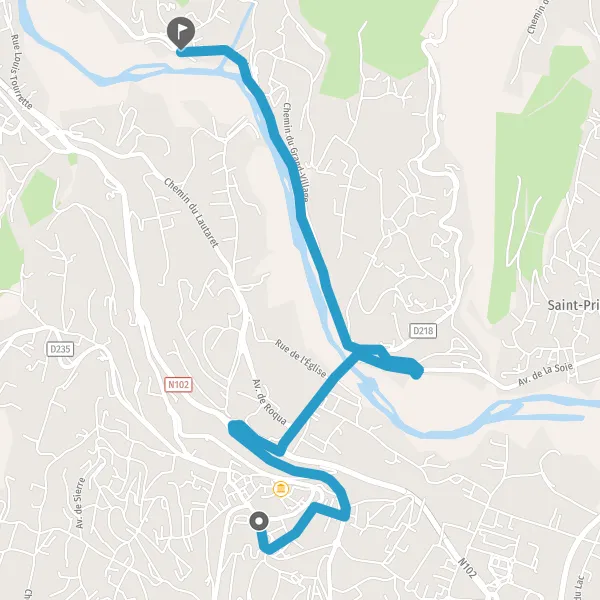 | Distance en voiture | 5,3 km à 5,4 km |