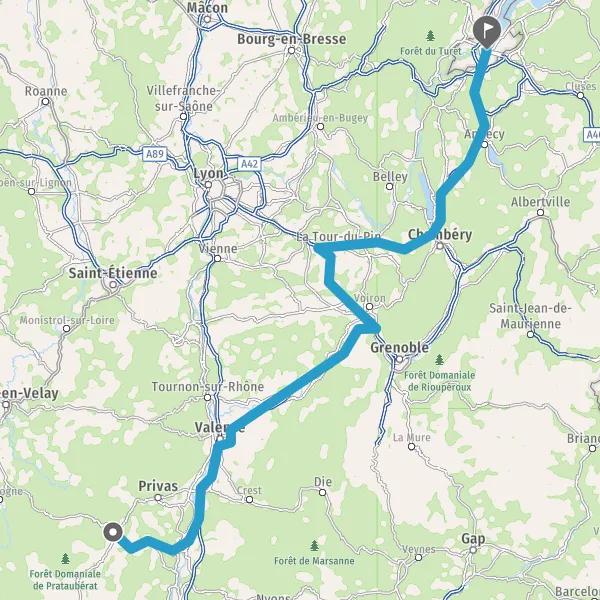 Prendre à droite et rejoindre A43 E70. Continuer sur 47 kilomètres