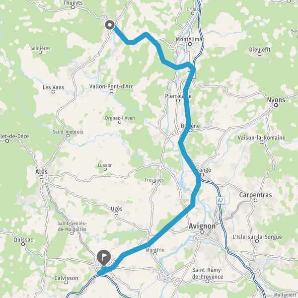 Au rond-point, prendre la 3ème sortie sur N102 (Route du Teil) et continuer sur 8,4 kilomètres