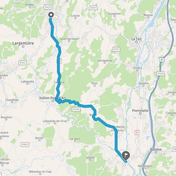 Au rond-point, prendre la 2ème sortie sur D1 (Route d'Aubenas) et continuer sur 9,7 kilomètres