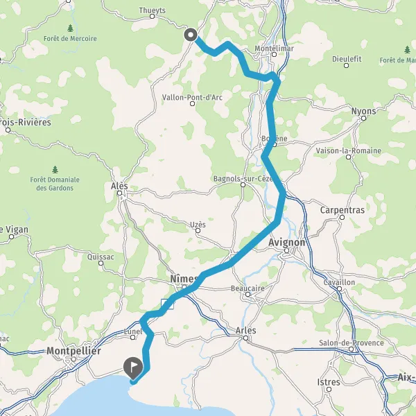 Au rond-point, prendre la 3ème sortie sur N102 (Route du Teil) et continuer sur 8,4 kilomètres