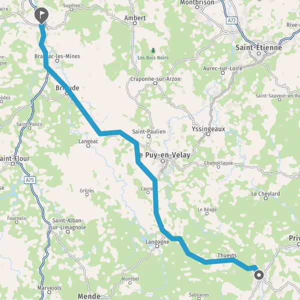 Tourner légèrement à gauche sur N102 (Route du Puy-en-Velay) et continuer sur 15 kilomètres