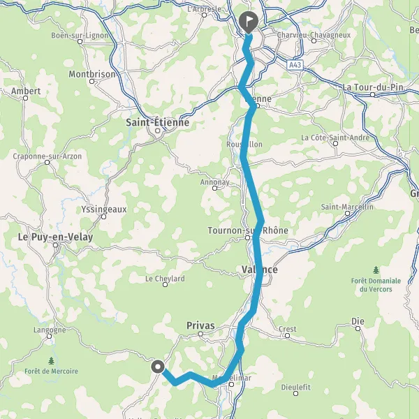 Avec le mode voiture, vous pouvez configurer vos options (type de véhicule, autoroute ou non, péage ou non, distance la plus courte), tout en ayant accès aux infos de circulation grâce à notre service d'info-trafic en temps réel. Ainsi faites des économies sur le coût ou la durée de votre voyage, en trouvant le trajet Aubenas Lyon adapté à vos besoins.