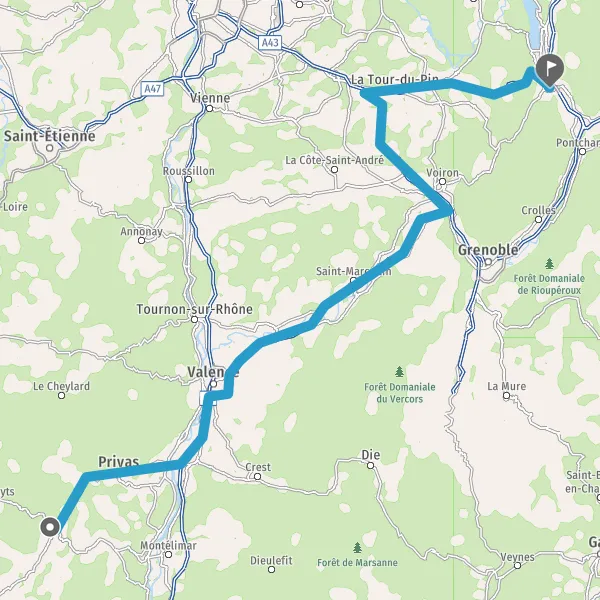 Prendre à gauche et rejoindre A48. Continuer sur 10 kilomètres