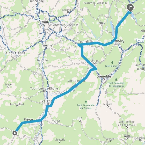 Prendre à droite et rejoindre A43 E70. Continuer sur 47 kilomètres
