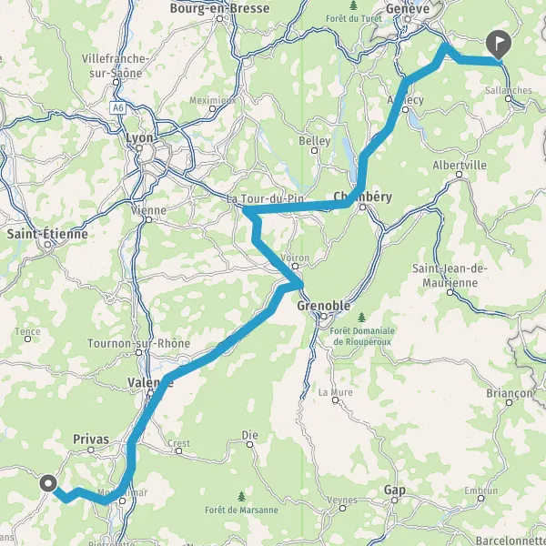 Prendre à droite et rejoindre A43 E70. Continuer sur 47 kilomètres
