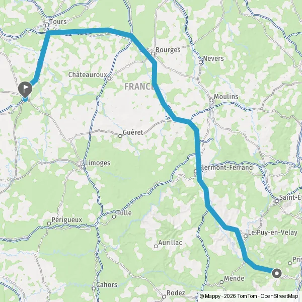 Prendre à droite et rejoindre A75 E11. Continuer sur 267 kilomètres