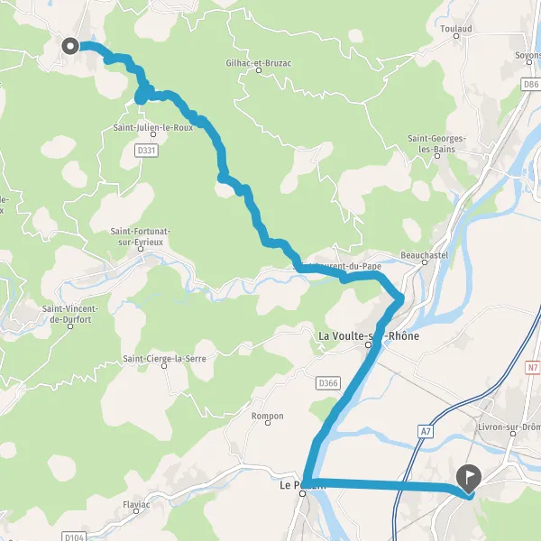 Au rond-point, prendre la 1ère sortie sur D86 (Route de la Voulte) et continuer sur 2,6 kilomètres