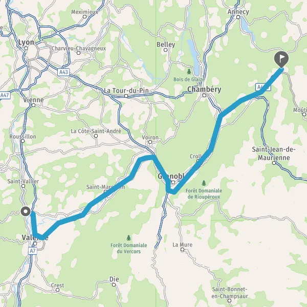 Prendre à droite et rejoindre A43 E70. Continuer sur 19 kilomètres