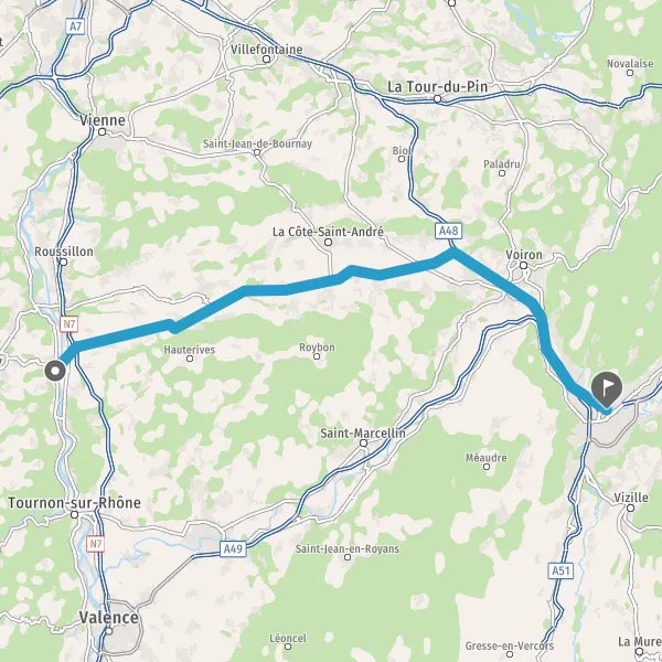 Prendre à droite et rejoindre A48. Continuer sur 4,8 kilomètres