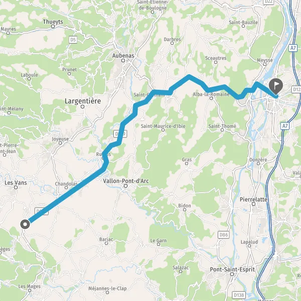 Au rond-point, prendre la 3ème sortie sur N102 (Route du Teil) et continuer sur 8,4 kilomètres
