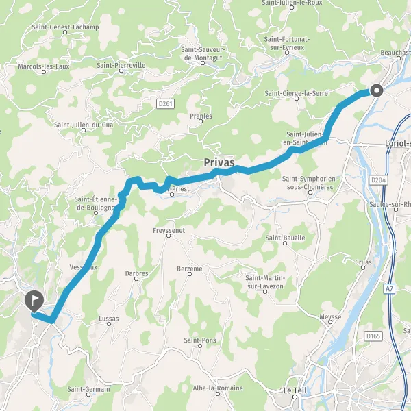 Tourner légèrement à droite sur D104 (Route de Privas) et continuer sur 6,1 kilomètres