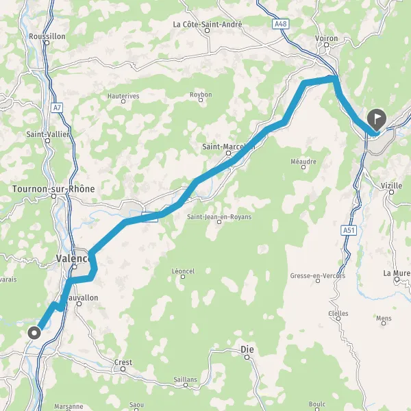 Prendre à gauche et rejoindre A48. Continuer sur 10 kilomètres