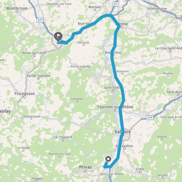 Prendre à droite et rejoindre A72. Continuer sur 1 kilomètre