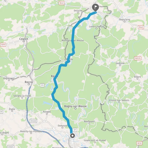 Au rond-point, prendre la 2ème sortie sur D989 (Rue de Monthermé) et continuer sur 3,3 kilomètres