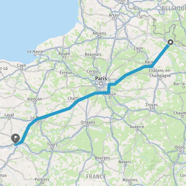 Prendre à droite et rejoindre A11 E50. Continuer sur 147 kilomètres