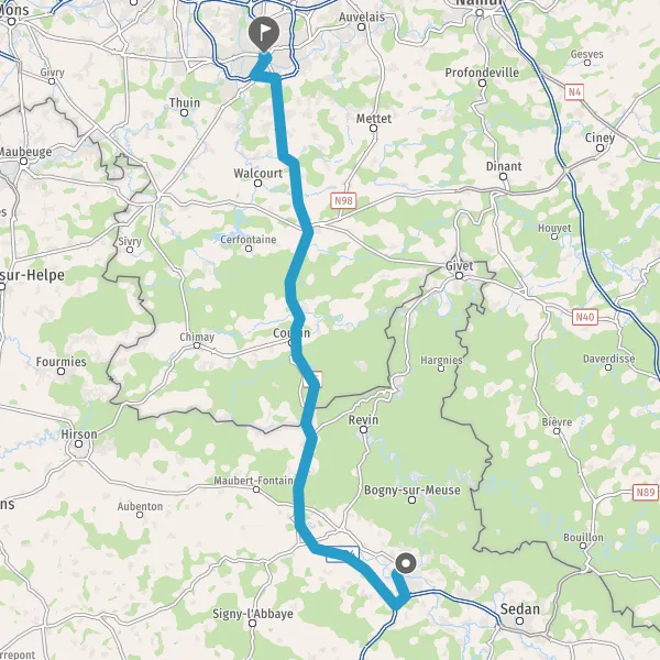 Tourner légèrement à droite sur N5 E420 (Route de Couvin) et continuer sur 3 kilomètres