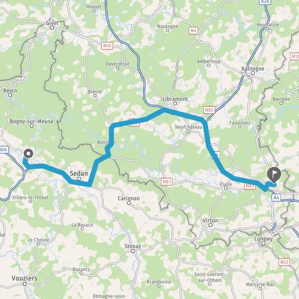 Continuer N89 E46 (Avenue de Bouillon) sur 1,2 kilomètre