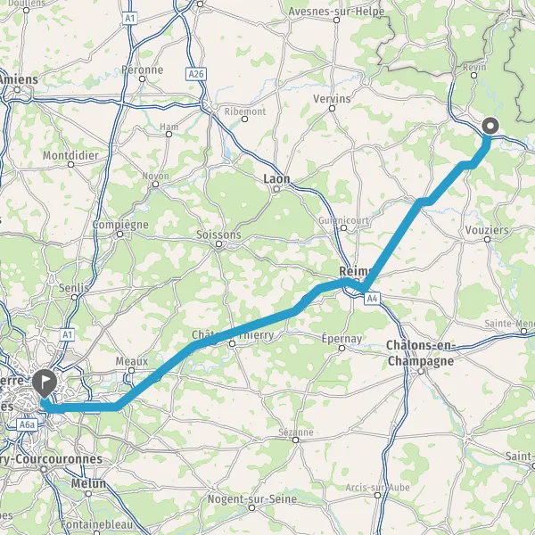 Prendre à droite et rejoindre A4 E50. Continuer sur 113 kilomètres