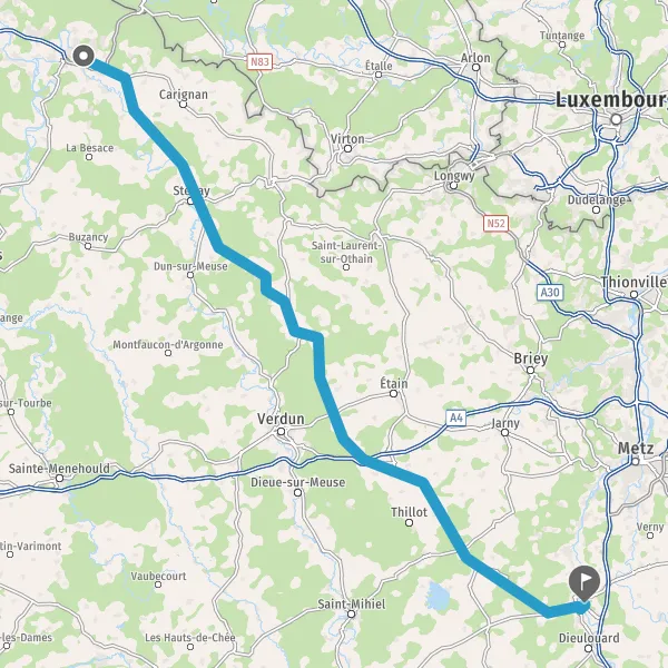 Prendre à droite et rejoindre A4 E411. Continuer sur 57 kilomètres