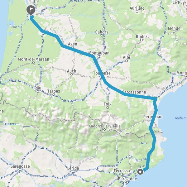 Avec le mode voiture, vous pouvez configurer vos options (type de véhicule, autoroute ou non, péage ou non, distance la plus courte), tout en ayant accès aux infos de circulation grâce à notre service d'info-trafic en temps réel. Ainsi faites des économies sur le coût ou la durée de votre voyage, en trouvant le trajet Arenys de Munt Bordeaux adapté à vos besoins.