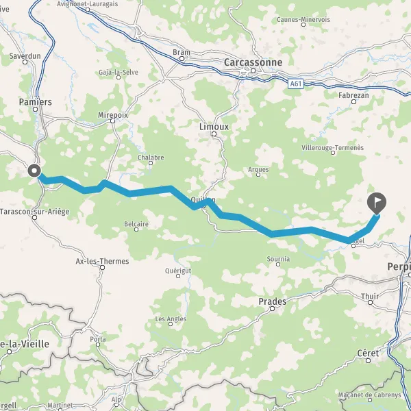 Tourner légèrement à gauche sur D117 (Avenue de Quillan) et continuer sur 7,5 kilomètres