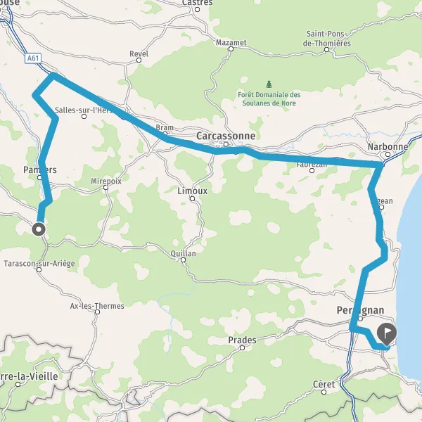 Prendre à droite et rejoindre A9 E15. Continuer sur 60 kilomètres