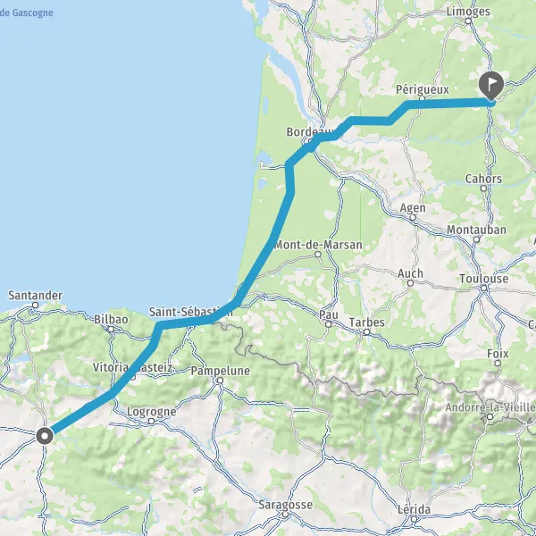 Prendre à droite et rejoindre AP-1 AP-1 AP-8 E-80 E-70 E-70 E-5 E-5. Continuer sur 20 kilomètres
