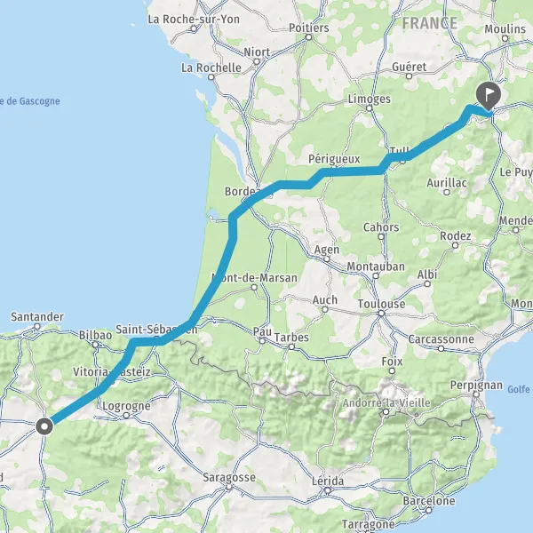 Prendre à droite et rejoindre AP-1 AP-1 AP-8 E-80 E-70 E-70 E-5 E-5. Continuer sur 20 kilomètres