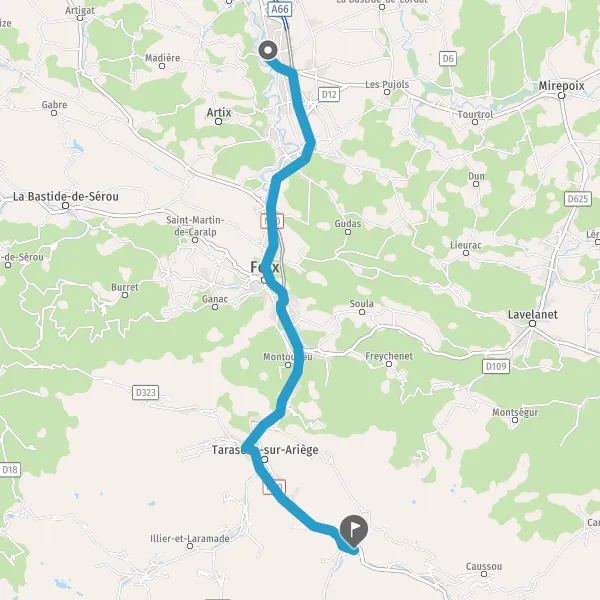 Au rond-point, prendre la 1ère sortie sur D624 (Route de Foix) et continuer sur 190 mètres