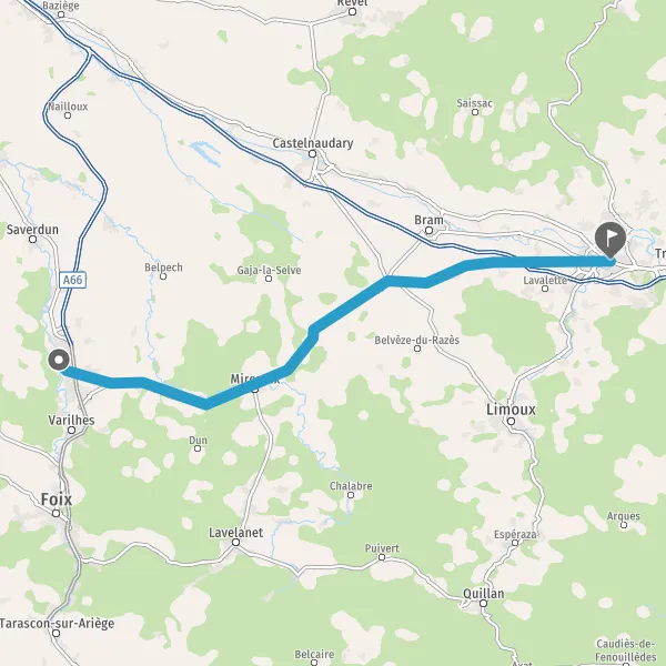 Au rond-point, prendre la 2ème sortie sur D119 (Route de Mirepoix) et continuer sur 18 kilomètres