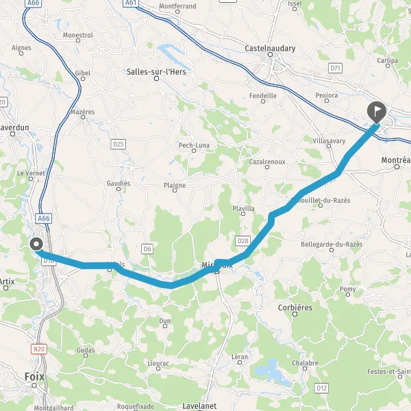 Au rond-point, prendre la 2ème sortie sur D119 (Route de Mirepoix) et continuer sur 18 kilomètres
