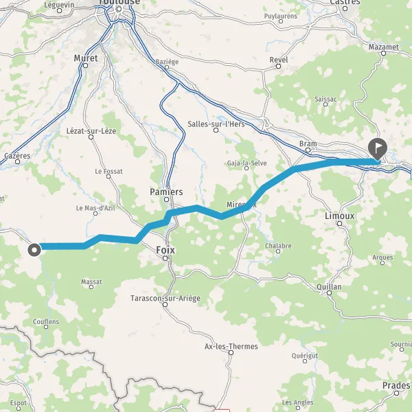 Tourner à droite sur D119 (Route de Mirepoix) et continuer sur 15 kilomètres