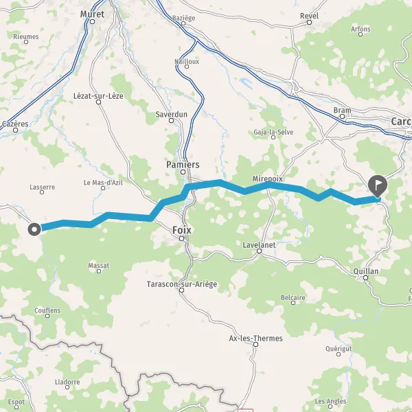 Tourner à droite sur D119 (Route de Mirepoix) et continuer sur 15 kilomètres
