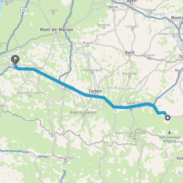 Continuer et rejoindre A64 E80. Continuer sur 187 kilomètres