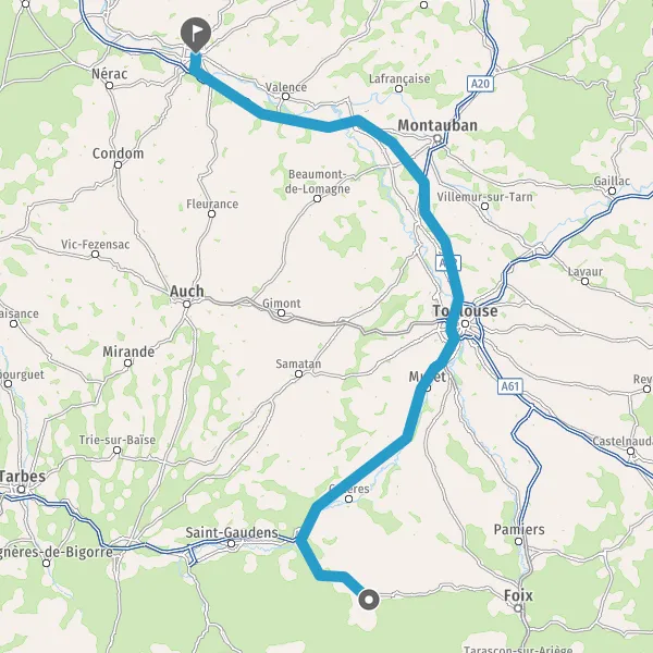Prendre à droite et rejoindre A62. Continuer sur 33 kilomètres