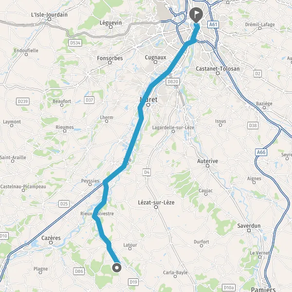 Au rond-point, prendre la 1ère sortie sur D627 (Route de Toulouse) et continuer sur 4,3 kilomètres