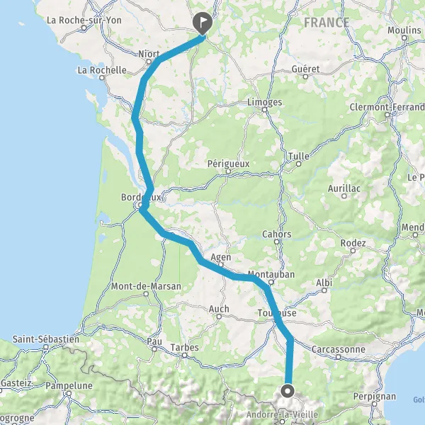 Continuer E5 (L'Aquitaine) sur 215 kilomètres