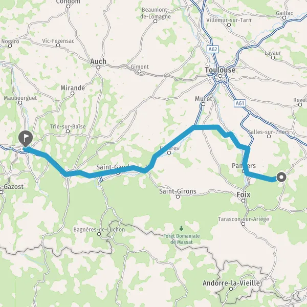 Prendre à droite et rejoindre A64 E80. Continuer sur 112 kilomètres