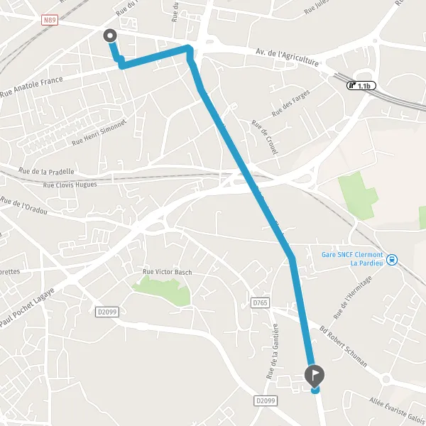 Ne perdez plus votre temps à chercher votre billet pas cher ou votre trajet le plus rapide ou avec le moins de km, Mappy vous permet de comparer tous les modes de transport et tous les horaires pour votre itinéraire de 1 Rue du Général Cochet, Clermont-Ferrand à 184 Boulevard Gustave Flaubert, Clermont-Ferrand.