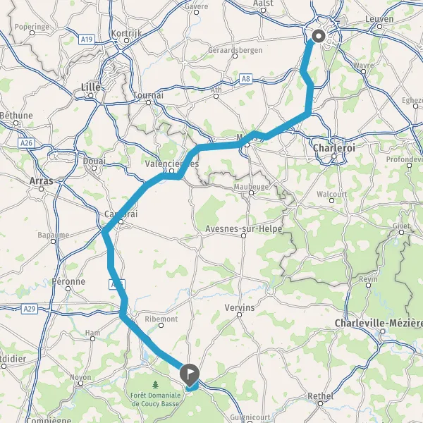 Prendre à gauche et rejoindre A26 E17. Continuer sur 77 kilomètres