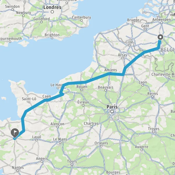 Trajet de Bruxelles (1000) à Rennes (35000) en voiture