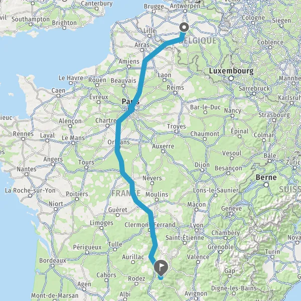 Continuer A1 A1 E19 E15 sur 108 kilomètres