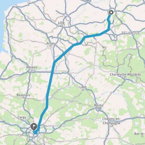 Continuer A1 A1 E19 E15 sur 120 kilomètres