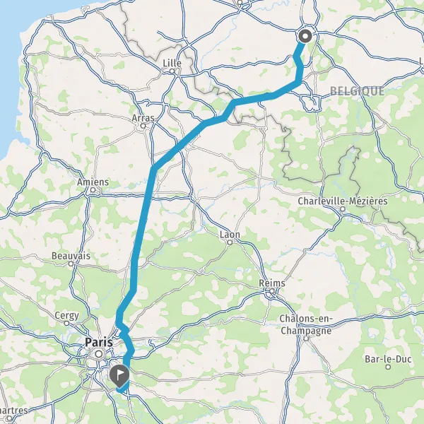Continuer A1 A1 E19 E15 sur 120 kilomètres