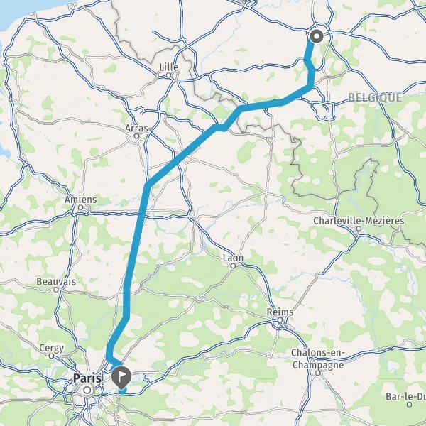 Continuer A1 A1 E19 E15 sur 114 kilomètres