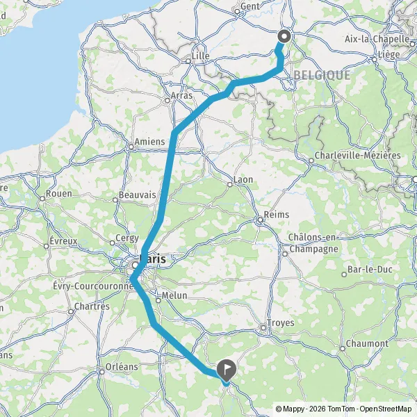 Continuer A1 A1 E19 E15 sur 120 kilomètres