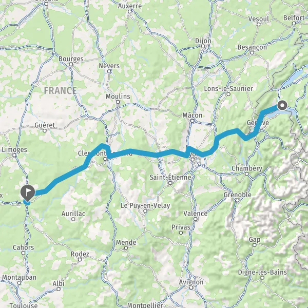 Prendre à droite et rejoindre A89 E70. Continuer sur 161 kilomètres