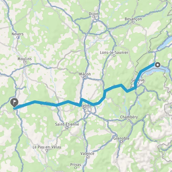 Continuer et rejoindre A89 E70. Continuer sur 77 kilomètres